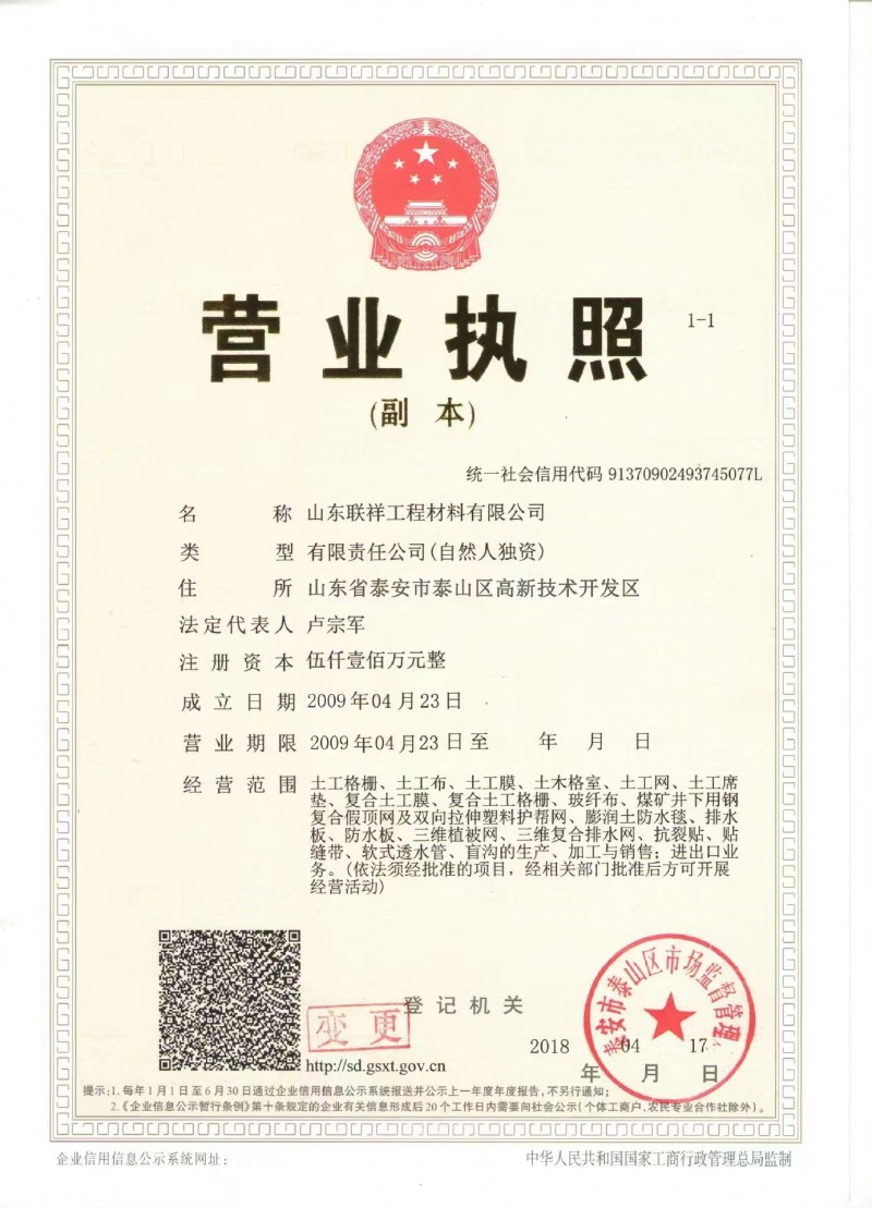 發(fā)證機構(gòu):   泰安市泰山區(qū)市場監(jiān)督管理局 發(fā)證時間 :   2018-04-17