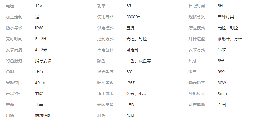 智慧太陽(yáng)能道路燈 電壓12V 功率35 日照時(shí)間6H 使用壽命50000H