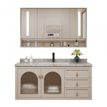 美式橡木智能現(xiàn)代輕奢衛(wèi)生間玻璃門洗臉盆柜組合