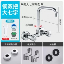 廚房入墻冷熱水龍頭洗菜池洗衣池淘菜盆萬向入墻式雙開家用混水閥 全銅洗衣機(jī)水龍頭4分加長快開龍頭一進(jìn)二出接頭自來水拖把池龍頭